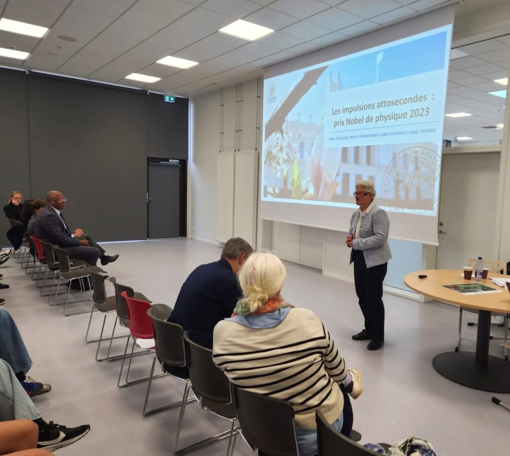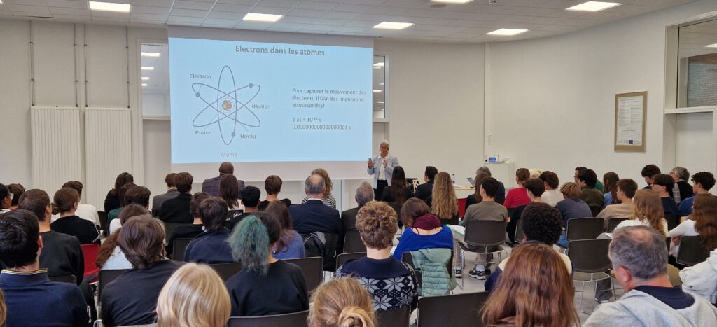 This was followed by a conference open to students in collège and lycée, allowing them to discover her research work – in particular the generation of high-order harmonics leading to the production of an “extended frequency comb in the ultraviolet and the development of attosecond lasers”, work that gave her the 2023 Nobel Prize in Physics.