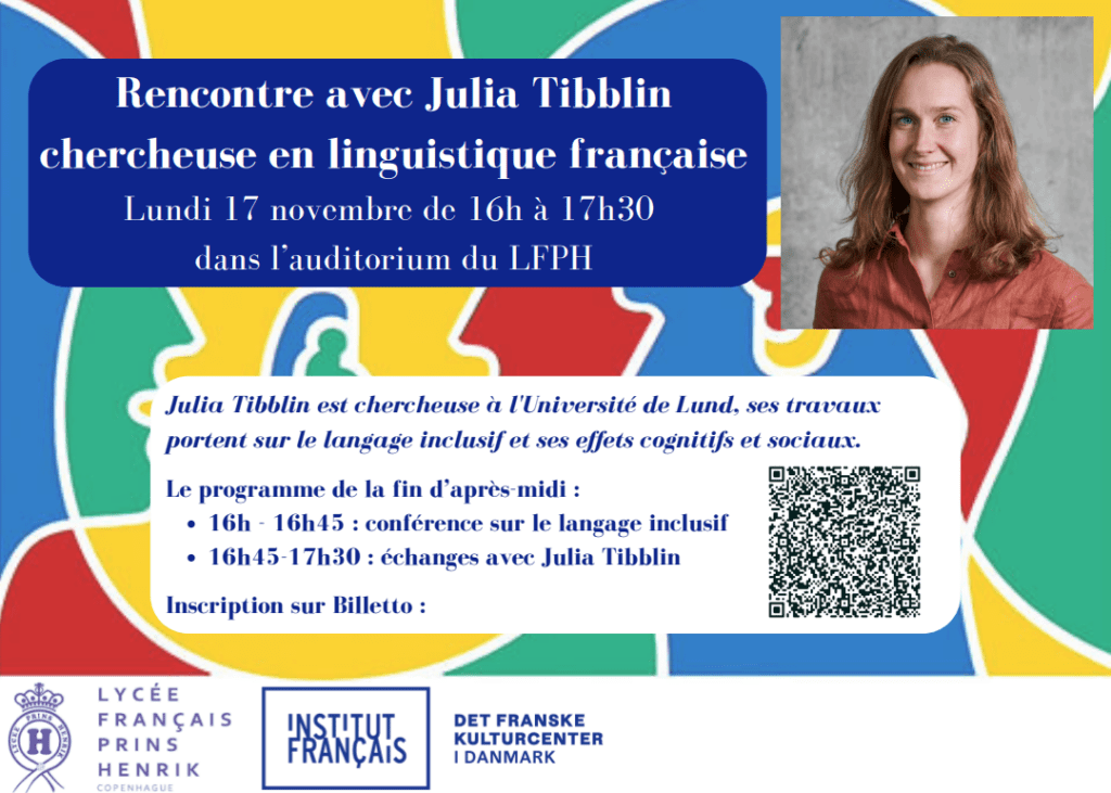 En collaboration avec l’Institut Français, nous organisons lundi 17 novembre de 16h à 17h30, une conférence animée par Julia Tibblin chercheuse en linguistique française. Cet événement est ouvert à tous, sur inscription via Billetto.