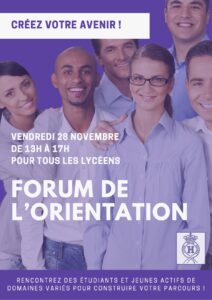 In 1ère and terminale students map out an academic plan to reach their educational goals. Individual academic counseling sessions are offered (one in 1ère and two in terminale), along with different activities to help them find the right school such as: Study-Choice Day “Forum de l’orientation,” information meeting for Sciences Po, information meeting for Parcoursup.