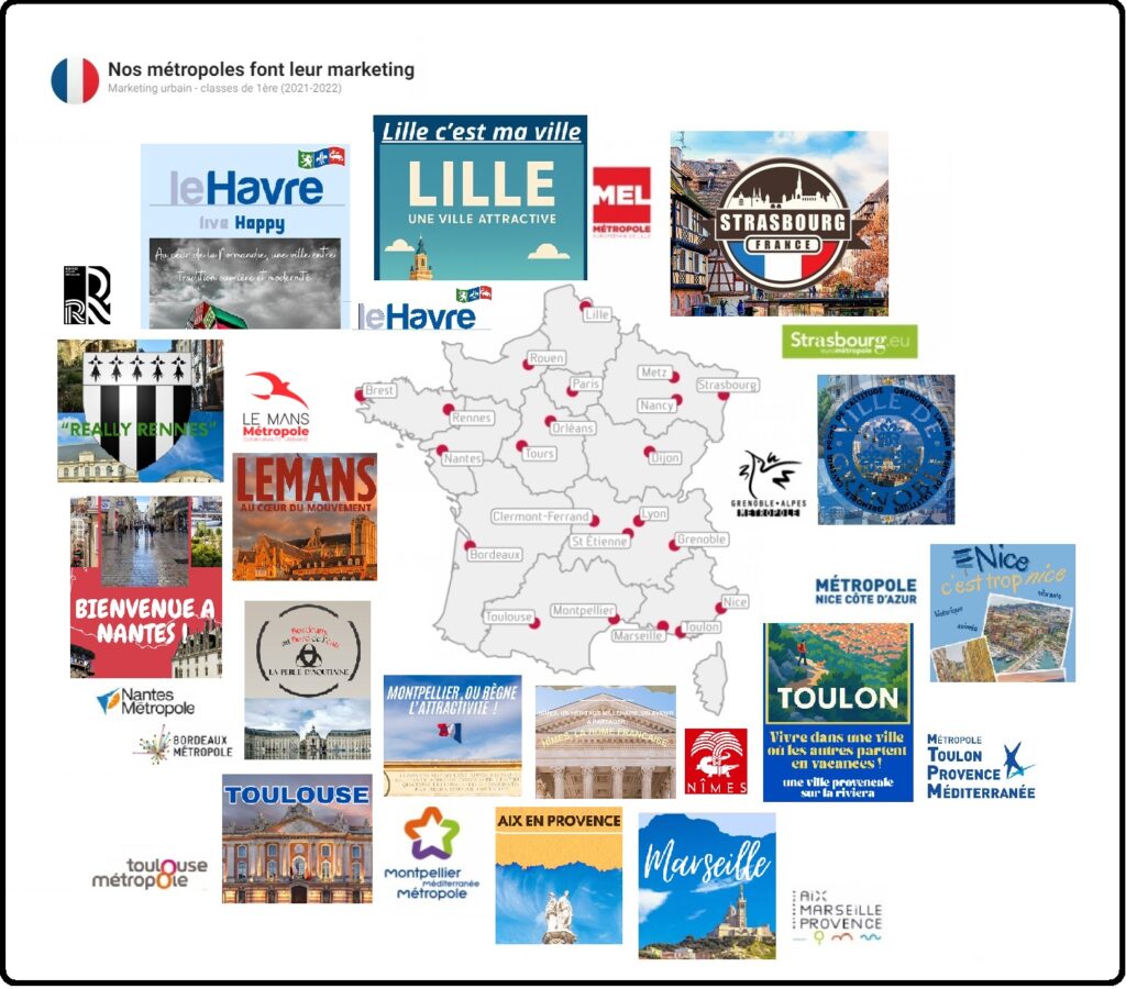 Dans le cadre du cours de géographie, les élèves de la classe de première se sont lancés dans un exercice de marketing urbain afin de promouvoir 15 des métropoles de France. Voici leurs affiches et leurs dépliants, également exposés au lycée, côté secondaire.