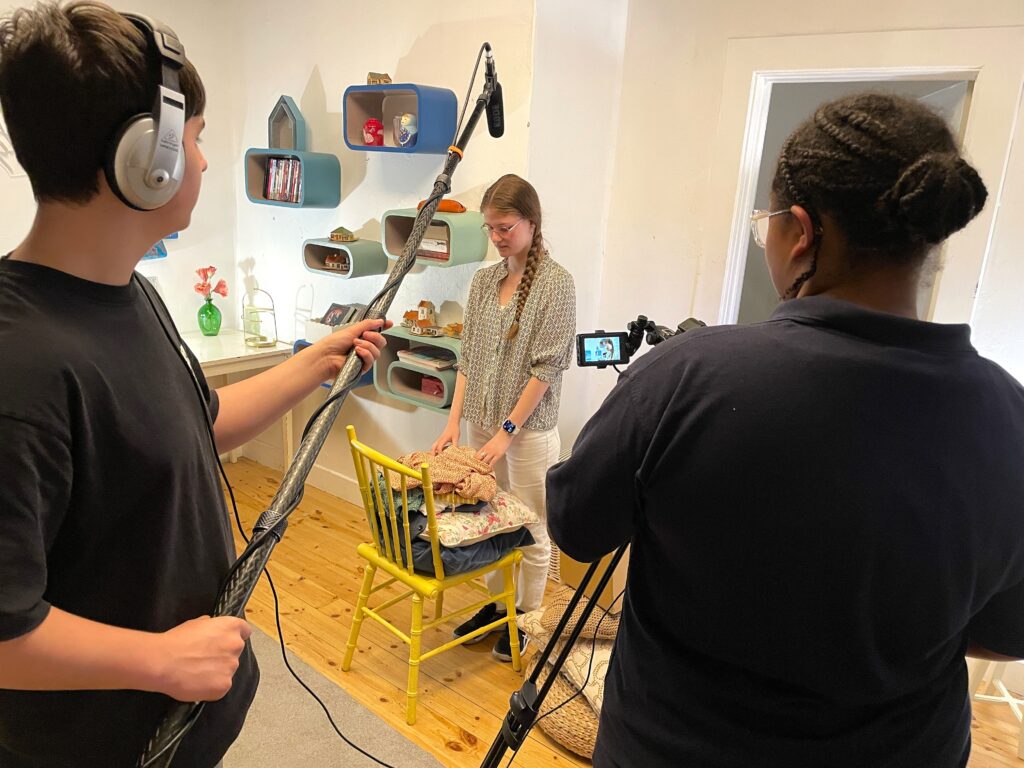 Over the course of two days, they first shot a short film based on a set script. Supervised by a director of photography, they discovered what it’s like to shoot on a film set and learned more about framing, lighting, and sound recording techniques.